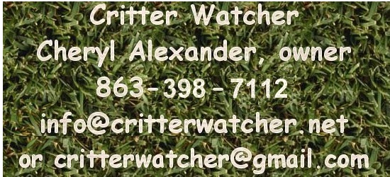 | If you have any questions at all about my services, areas, or prices, please email or call me. If I don't cover your area or watch your kind of critters, I'll try to help you find someone who does. If you have sent an email to me and I have not answered or called, please call me. There may have been difficulties with computer or email retrieval. | ||